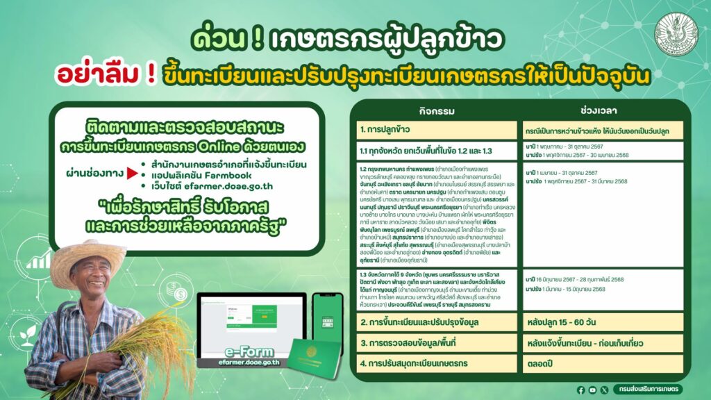 กรมส่งเสริมการเกษตร แจ้งอย่าลืมขึ้นทะเบียนเกษตรกรและปรับปรุงทะเบียนเกษตรกร ให้เป็นปัจจุบัน