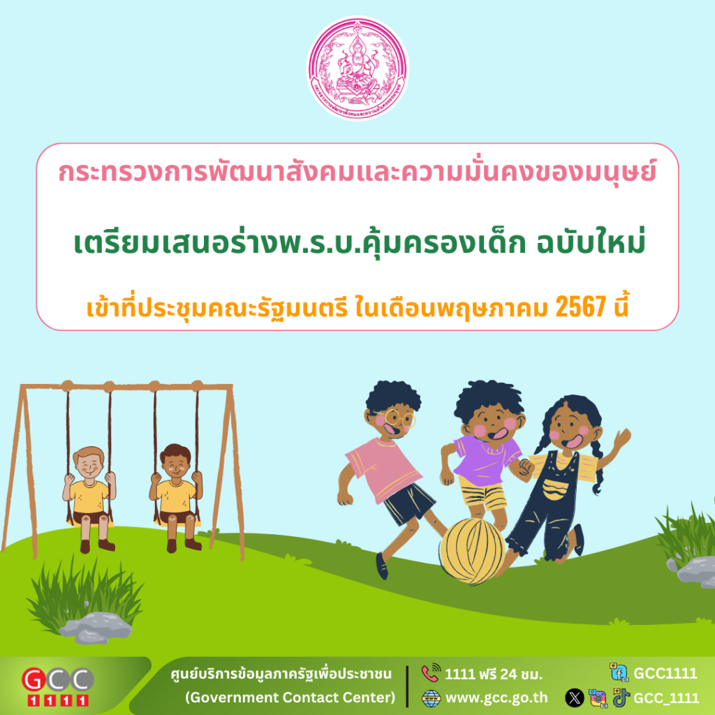 พม. เตรียมเสนอร่าง พ.ร.บ.คุ้มครองเด็ก ฉบับใหม่ เข้า ครม. ใน พ.ค. นี้ พร้อม บังคับใช้เร็วที่สุด เน้น ครอบครัว ชุมชน ท้องถิ่น ร่วมรับผิดชอบมากขึ้น