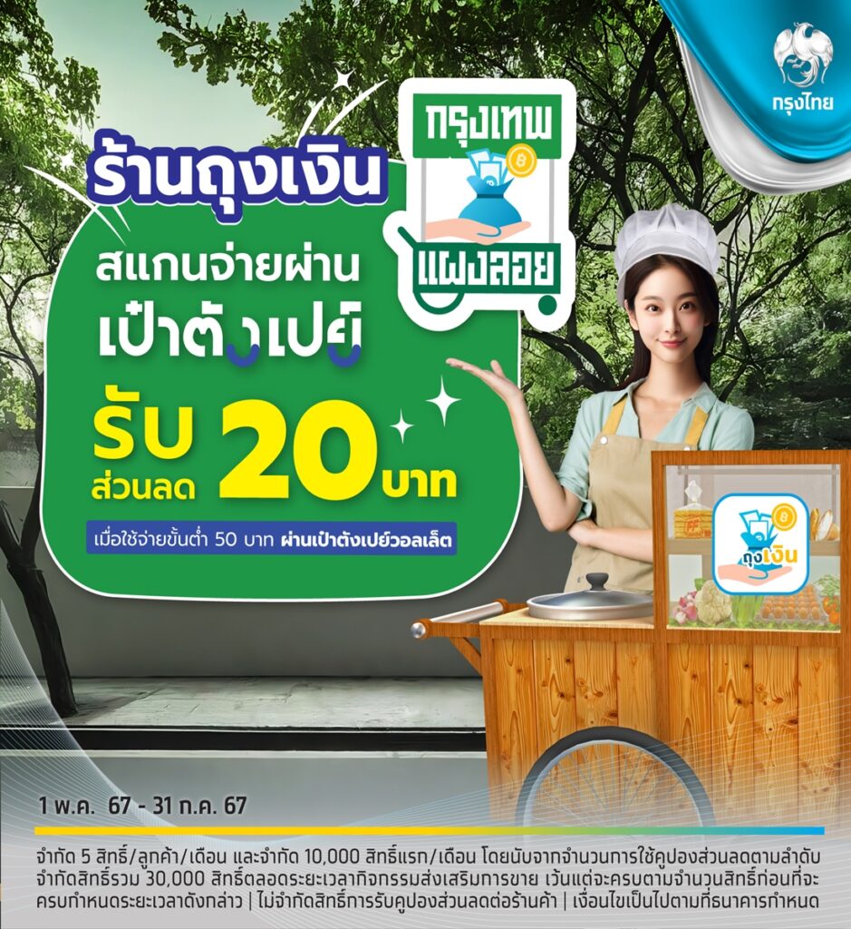 ธนาคารกรุงไทย เปิดเผยลูกค้าร้านถุงเงินสแกนจ่ายผ่านเป๋าตังเปย์รับคูปองส่วนลด 20 บาท ตั้งแต่บัดนี้ – 31 ก.ค.67