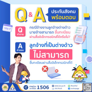 - ตอบ : ลูกจ้างที่เป็นต่างด้าวไม่สามารถขึ้นทะเบียนผ่านสื่ออิเล็กทรอนิกส์ได้