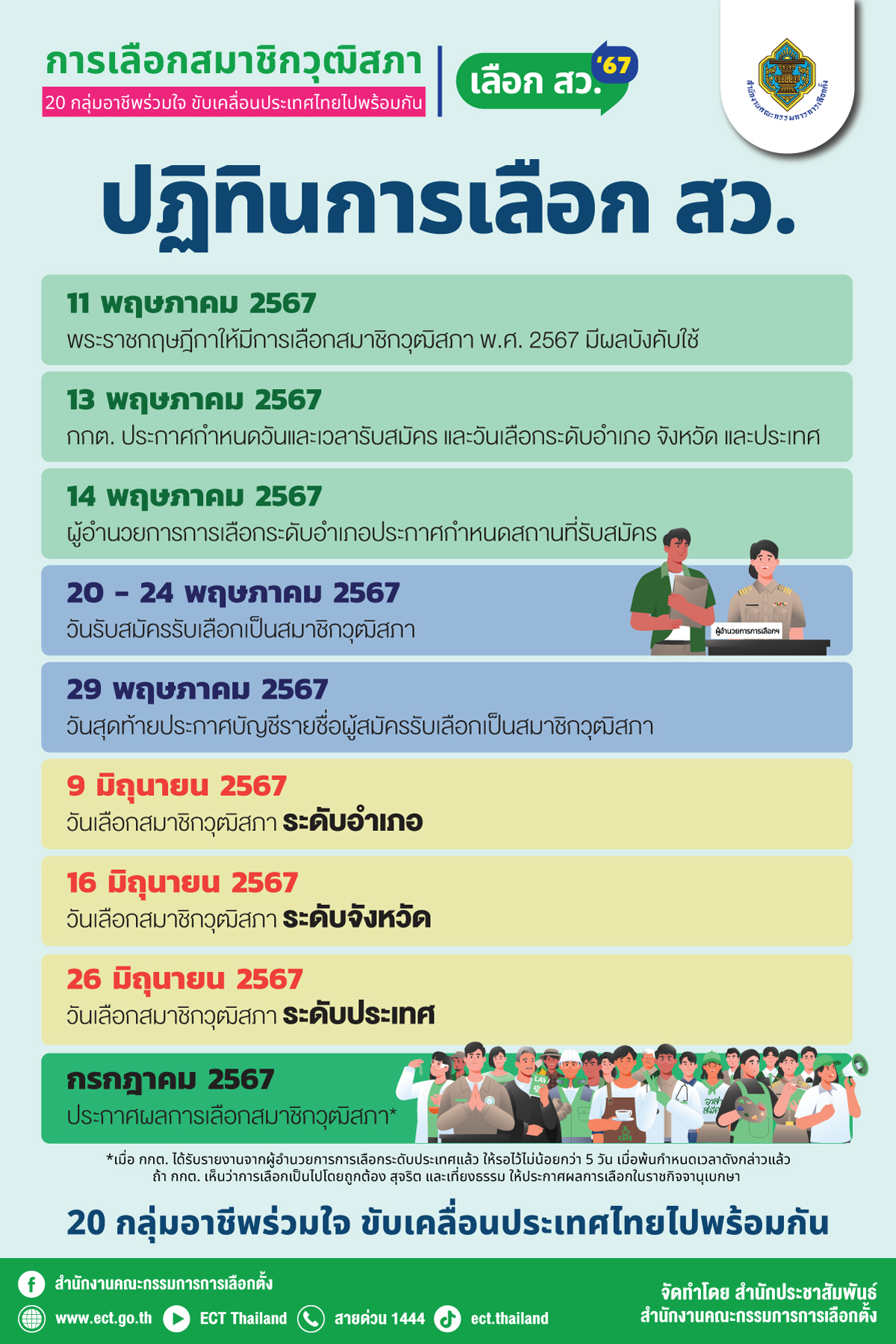 สำนักงานคณะกรรมการการเลือกตั้ง ประชาสัมพันธ์ปฏิทินการเลือกสมาชิกวุฒิสภา ปี 2567 โดยมีรายละเอียดดังนี้