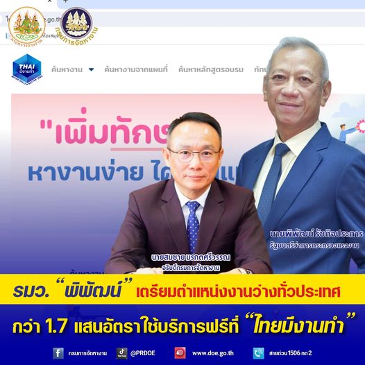 - การเตรียมตำแหน่งงานว่างจากทั่วประเทศ ให้บริการประชาชนผ่านระบบออนไลน์ บนแพลตฟอร์ม “ไทยมีงานทำ”