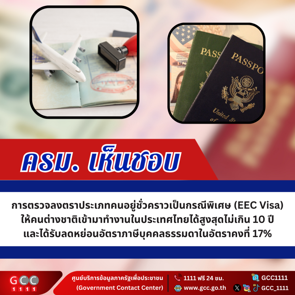 ครม. รับทราบผลการประชุมคณะกรรมการนโยบายเขตพัฒนาภาคตะวันออก เกี่ยวกับการตรวจลงตราประเภทคนอยู่ชั่วคราวเป็นกรณีพิเศษ EEC Visa