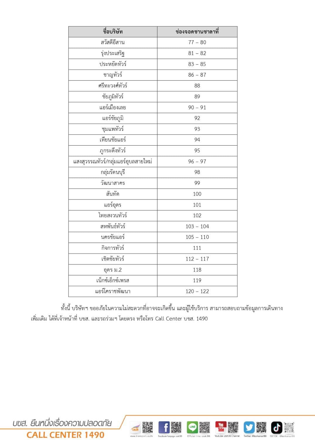 - รถร่วมบริการ รถโดยสารจอดรับผู้โดยสารที่ ช่องจอดชานชาลาที่ 37 – 122 ดังนี้