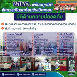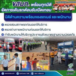 - กำชับการตรวจสอบสภาพรถเมล์ให้มีความพร้อมก่อนออกให้บริการ เพื่อรองรับการให้บริการช่วงเปิดเทอม และเพื่อเตรียมความพร้อมเข้าสู่ฤดูฝน