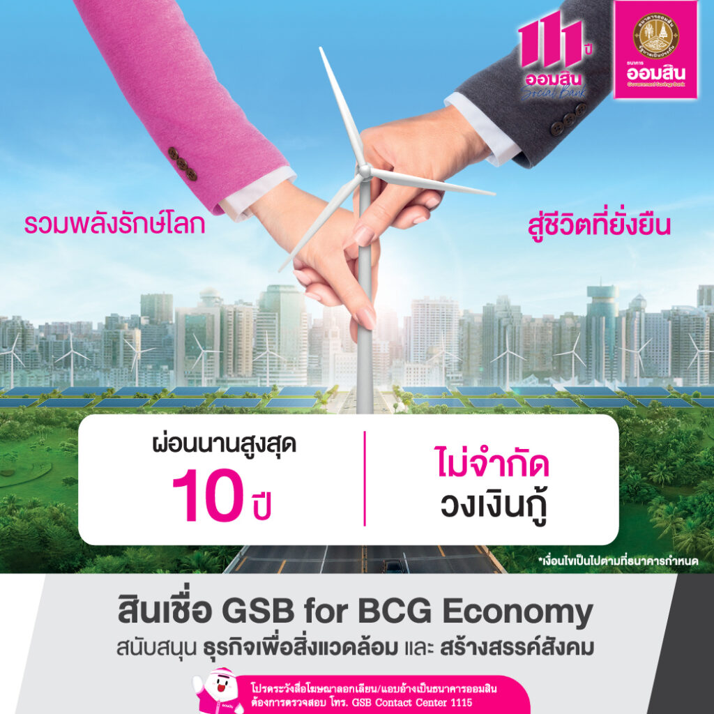 ธนาคารออมสิน แนะนำ “สินเชื่อ GSB for BCG Economy” มุ่งสนับสนุนธุรกิจที่เป็นมิตรต่อสิ่งแวดล้อม และสร้างสรรค์สังคม