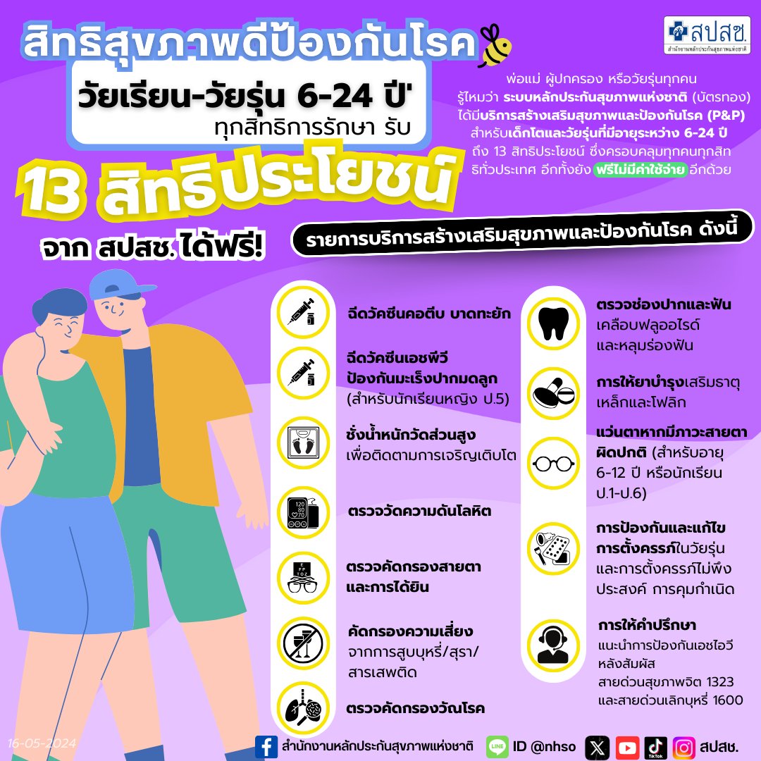 สำนักงานหลักประกันสุขภาพแห่งชาติ แนะนำผู้มีอายุ 6-24 ปี รับ 13 สิทธิประโยชน์ ฟรี