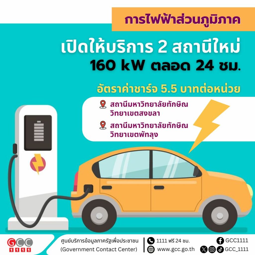 การไฟฟ้าส่วนภูมิภาค แนะนำ PEA VOLTA เปิดให้บริการ 2 สถานีใหม่ (สถานีร่วมเครือข่าย) ดังนี้ สถานีมหาวิทยาลัยทักษิณวิทยาเขตสงขลา สถานีมหาวิทยาลัยทักษิณวิทยาเขตพัทลุง โดยพร้อมให้บริการ 160 kW พร้อมกับอัตราค่าชาร์จโดนใจ 5.5 บาทต่อหน่วย เปิดให้บริการตลอด 24 ชม. ทั้งนี้ หากเป็นผู้ประกอบการที่ต้องการร่วมเป็นเครือข่าย VOLTA CONNEXT โปรโมชันพิเศษ ค่าแรกเข้า/ค่ารายเดือน 1 บาท เท่านั้นสามารถอ่านรายละเอียดเพิ่มเติม https://peavoltaev.pea.co.th/product-network-operation/    หรือติดต่อผ่านอีเมล์ : info.pea.ev@pea.co.th หรือ โทร. 1129กด5