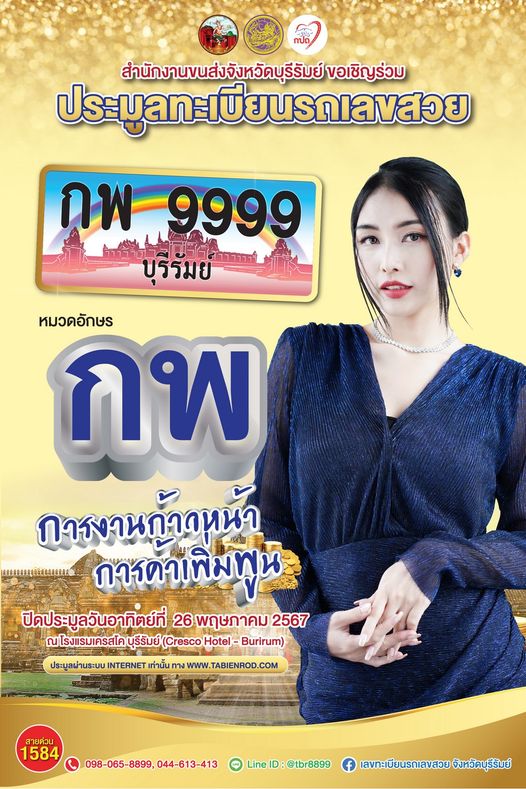 กปถ. สำนักงานขนส่งจังหวัดบุรีรัมย์ จัดงานงานประมูลทะเบียนรถเลขสวย หมวดอักษร กพ ในวันที่ 26 พ.ค. 67