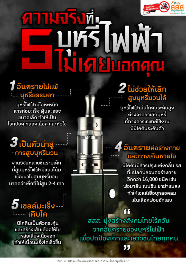 สำนักงานกองทุนสนับสนุนการสร้างเสริมสุขภาพ แจ้งเตือน 5 ความจริงที่บุหรี่ไฟฟ้าไม่เคยบอกคุณ