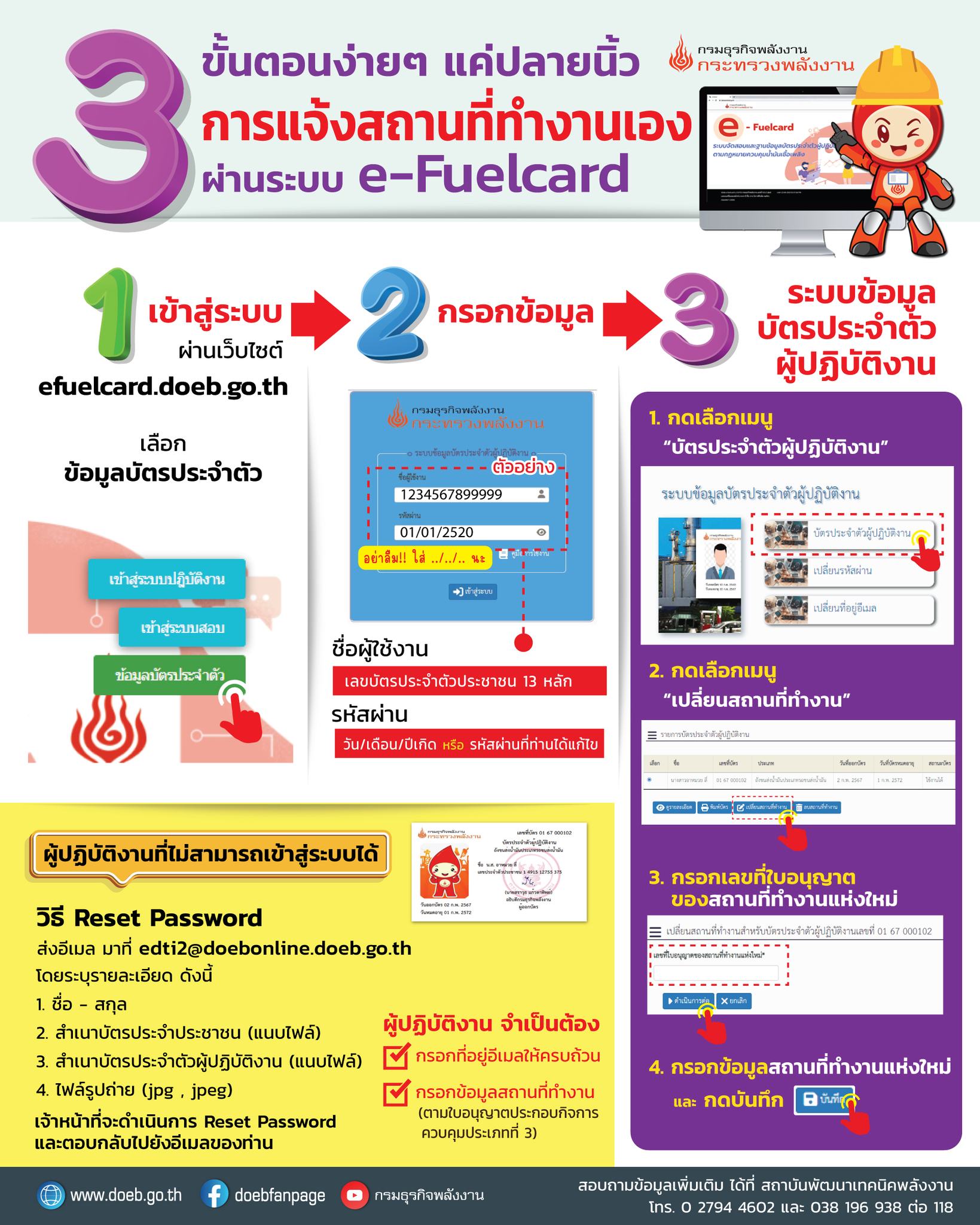 กรมธุรกิจพลังงาน แนะนำ 3 ขั้นตอนง่ายๆ แค่ปลายนิ้ว การแจ้งสถานที่ทำงาน ผ่านระบบ e-Fuelcard