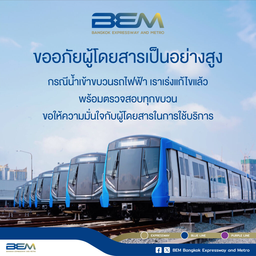 BEM ชี้แจงกรณีเหตุการณ์น้ำไหลเข้าในขบวนรถไฟฟ้าสายเฉลิมรัชมงคล