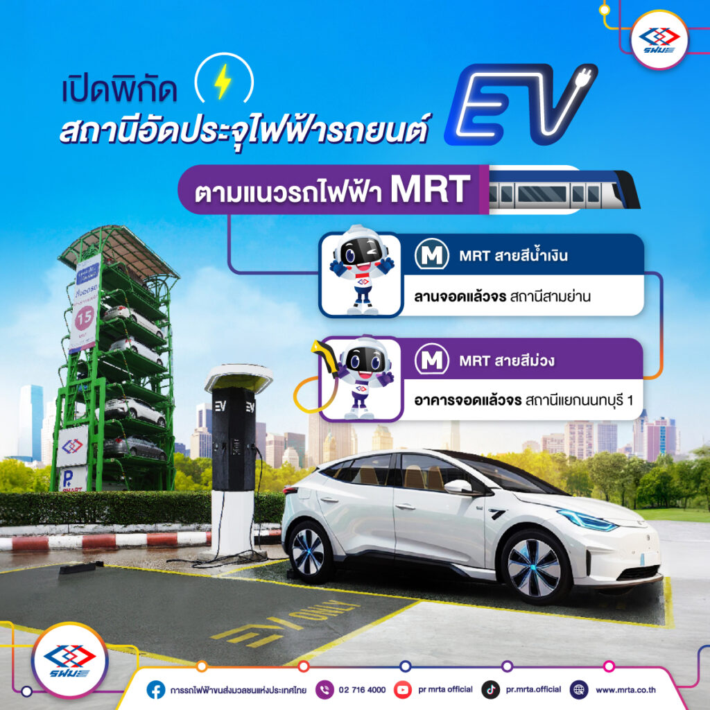 รฟม. เปิดให้บริการสถานีอัดประจุไฟฟ้า รถยนต์ EV ตามแนวเส้นทางรถไฟฟ้า MRT