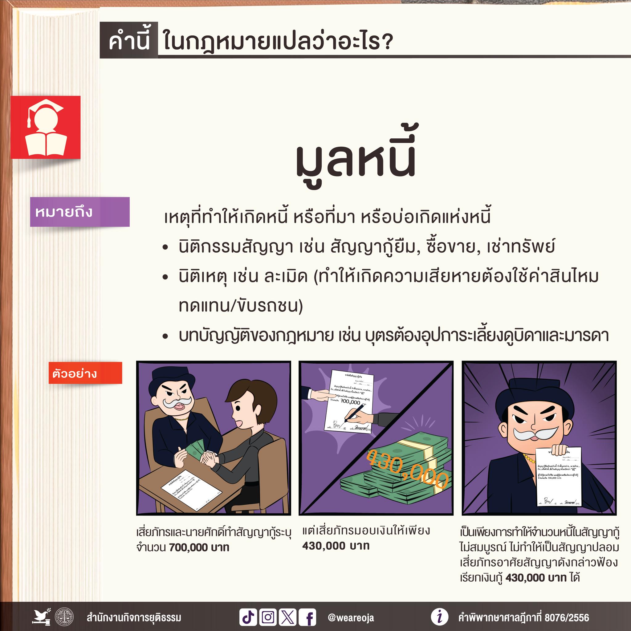 สำนักงานกิจการยุติธรรม แนะนำมูลหนี้ คำในกฎหมายแปลว่าอะไร