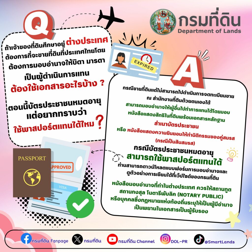 กรมที่ดิน แนะนำ”เจ้าของที่ดินอยู่ต่างประเทศ จะขายที่ดินที่ประเทศไทย โดยมอบอำนาจต้องใช้เอกสารอะไรบ้าง”