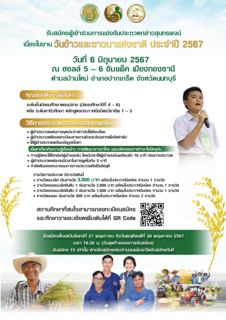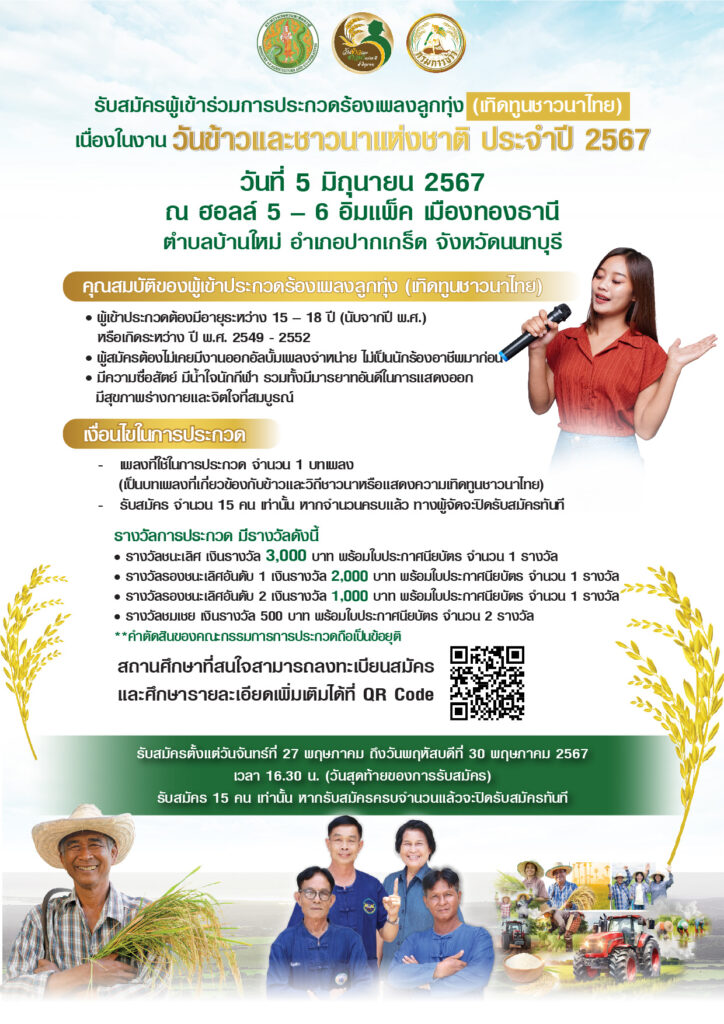 กรมการข้าว เชิญชวนร่วมกิจกรรม “ประกวดร้องเพลงลูกทุ่ง” และ “ประกวดกล่าวสุนทรพจน์” วันที่ 5 – 6 มิถุนายน 2567 ข่าวสารกิจกรรม กรมการข้าว เชิญชวนร่วมกิจกรรม “ประกวดร้องเพลงลูกทุ่ง” และ “ประกวดกล่าวสุนทรพจน์” วันที่ 5 – 6 มิถุนายน 2567 กรมการข้าว เชิญชวนร่วมกิจกรรม “ประกวดร้องเพลงลูกทุ่ง (เทิดทูนชาวนาไทย)” และ “แข่งขันประกวดกล่าวสุนทรพจน์” เนื่องในวันข้าวและชาวนาแห่งชาติ ประจำปี 2567 ในวันที่ 5 – 6 มิถุนายน 2567 ณ ฮอลล์ 5 – 6 อิมแพ็ค เมืองทองธานี รับสมัครตั้งแต่บัดนี้ – 30 พฤษภาคม 2567 ที่มา : https://citly.me/DvCFi Post Views: 20 FacebookFacebookXTwitterLINELine