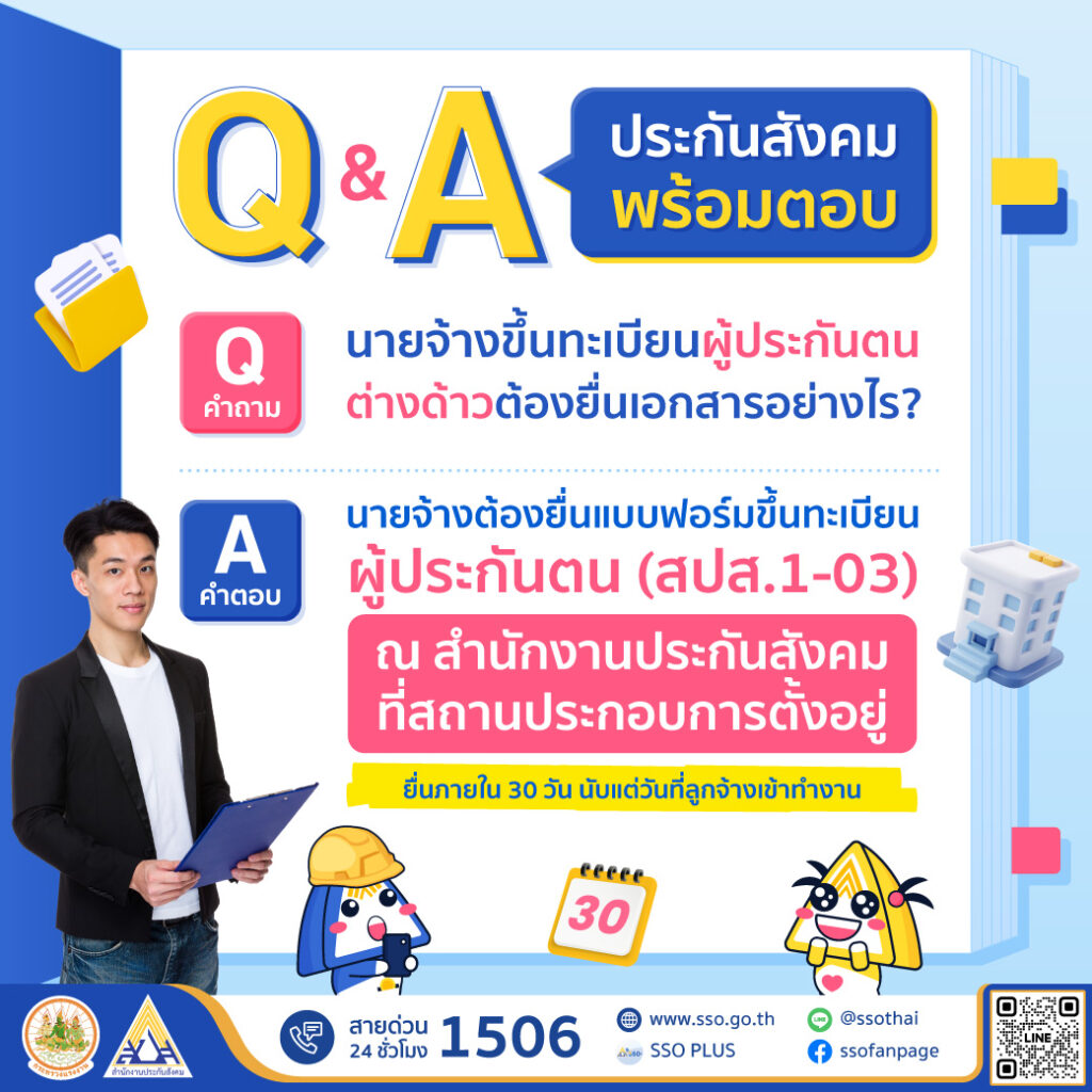 - **อย่าลืมยื่นแบบฟอร์มขึ้นทะเบียนผู้ประกันตน (สปส.1-03) ให้ลูกจ้างทุกคน เพื่อคุ้มครองสิทธิประโยชน์ให้แก่ลูกจ้าง