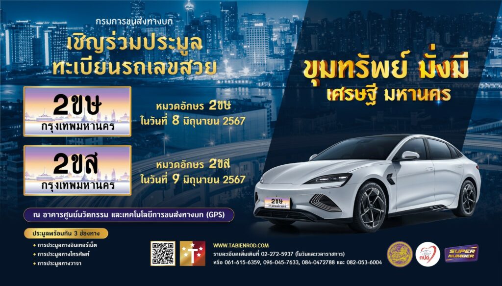 กปถ. ขอเชิญร่วมประมูลทะเบียนรถเลขสวย Series 2ขx ในวันที่ 8 – 9 มิถุนายน 2567