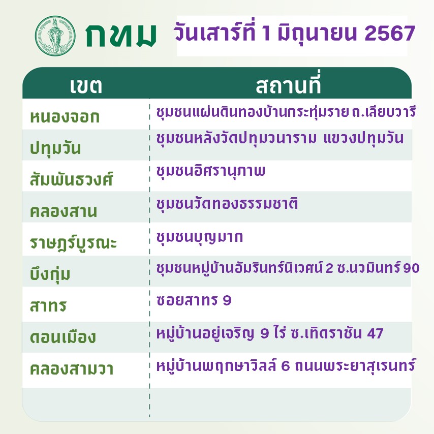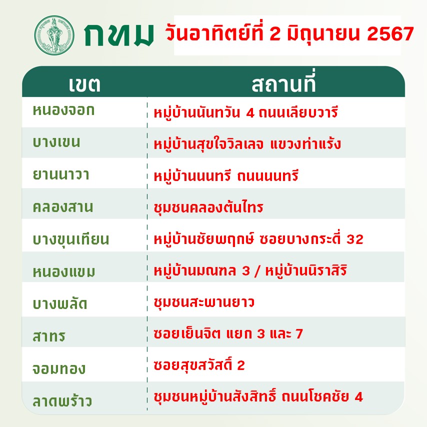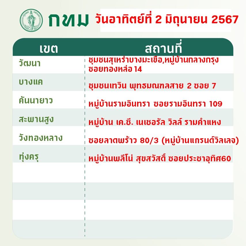 กรุงเทพมหานคร นัดทิ้ง นัดเก็บ ขยะชิ้นใหญ่ วันที่ 1 – 2 มิถุนายน 2567 ข่าวสารกิจกรรม กรุงเทพมหานคร นัดทิ้ง นัดเก็บ ขยะชิ้นใหญ่ วันที่ 1 – 2 มิถุนายน 2567 กรุงเทพมหานคร นัดทิ้ง นัดเก็บ ขยะชิ้นใหญ่ วันที่ 1 – 2 มิถุนายน 2567 ตั้งแต่เวลา 09.00 – 12.00 น. ทุกสำนักงานเขตให้บริการฟรี โดยไม่มีค่าใช้จ่าย ติดตามข่าวสาร นัดทิ้ง นัดเก็บ ขยะชิ้นใหญ่ ทุกเสาร์ – อาทิตย์ ได้ที่ https://pr-bangkok.com/?page_id=564, https://www.facebook.com/bangkokbma , https://x.com/bangkokbma ที่มา : https://citly.me/8IsE5 Post Views: 80 FacebookFacebookXTwitterLINELine