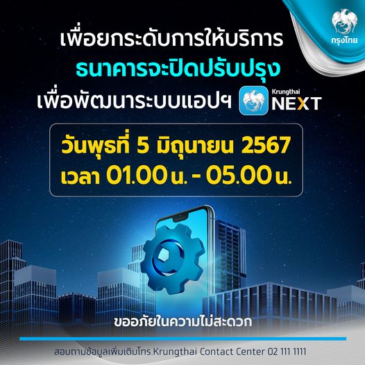 ธนาคารกรุงไทย แจ้งปิดปรับปรุงเพื่อพัฒนาระบบ แอปฯ Krungthai NEXT วันที่ 5 มิถุนายน 2567 ข่าวสารกิจกรรม ธนาคารกรุงไทย แจ้งปิดปรับปรุงเพื่อพัฒนาระบบ แอปฯ Krungthai NEXT วันที่ 5 มิถุนายน 2567 ธนาคารกรุงไทย แจ้งปิดปรับปรุงเพื่อพัฒนาระบบแอปพลิเคชัน Krungthai NEXT ในวันพุธที่ 5 มิถุนายน 2567 เวลา 01.00 – 05.00 น. เพื่อยกระดับการให้บริการ กรุณาวางแผนทำธุรกรรมล่วงหน้า สอบถามข้อมูลเพิ่มเติมได้ที่ Krungthai Contact Center 0 2111 1111 ที่มา : https://citly.me/AEUJr Post Views: 16 FacebookFacebookXTwitterLINELine