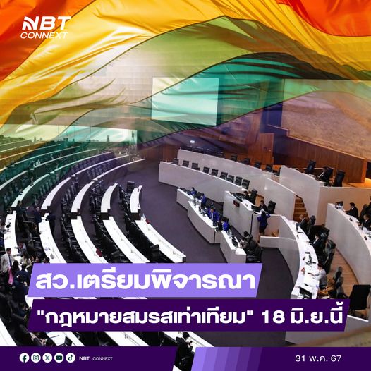 สมาชิกวุฒิสภา เตรียมพิจารณา “กฎหมายสมรสเท่าเทียม” วันที่ 18 มิถุนายน 2567