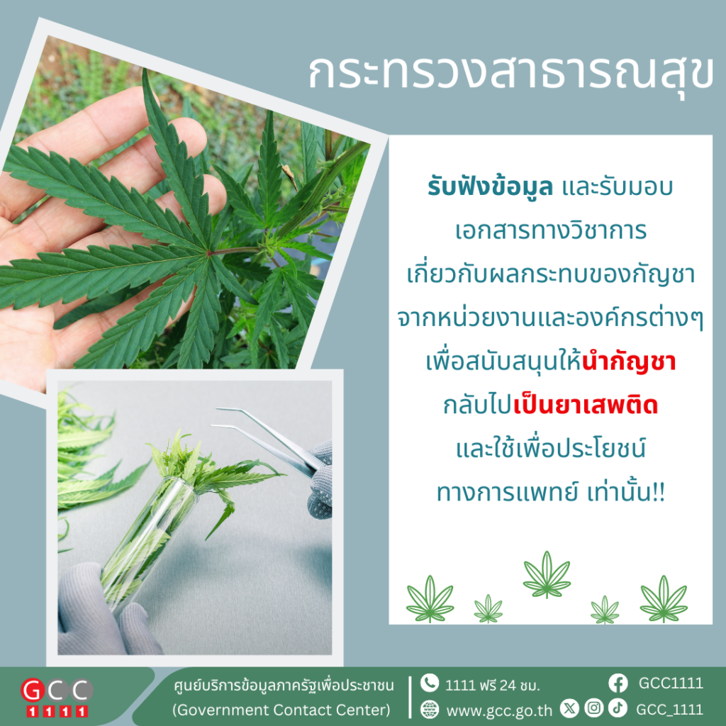 กระทรวงสาธารณสุข รับฟังข้อมูลพร้อมเอกสารทางวิชาการจากราชวิทยาลัยแพทย์ นักวิชาการและเครือข่ายภาคประชาชน เพื่อสนับสนุนให้กัญชากลับไปเป็นยาเสพติด