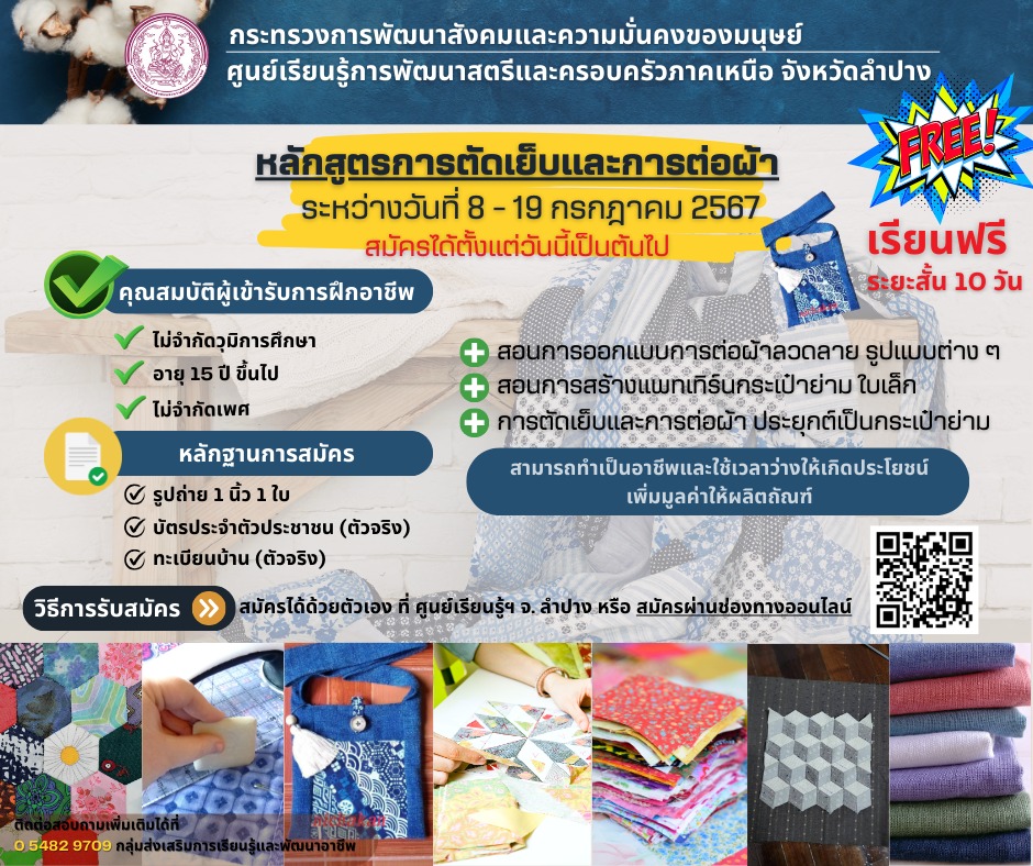• หลักสูตรตัดเย็บและการต่อผ้า https://forms.gle/KeMfz6Tiqguyzjr88