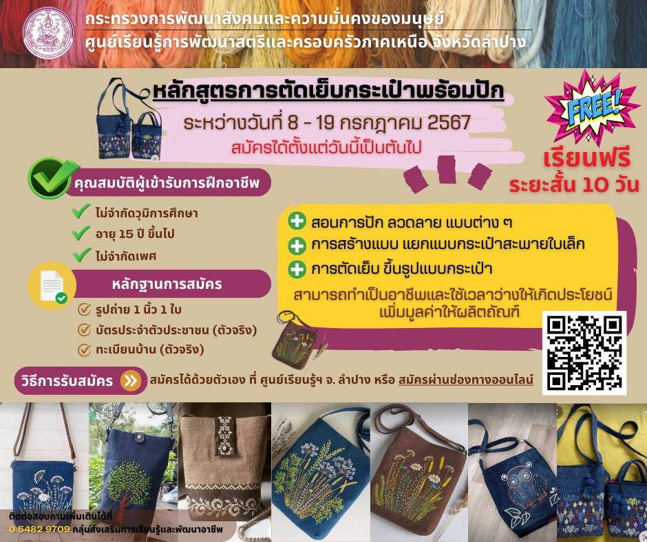 • หลักสูตรการตัดเย็บกระเป๋าพร้อมปัก https://forms.gle/Qva3p2ga5qiariSr8