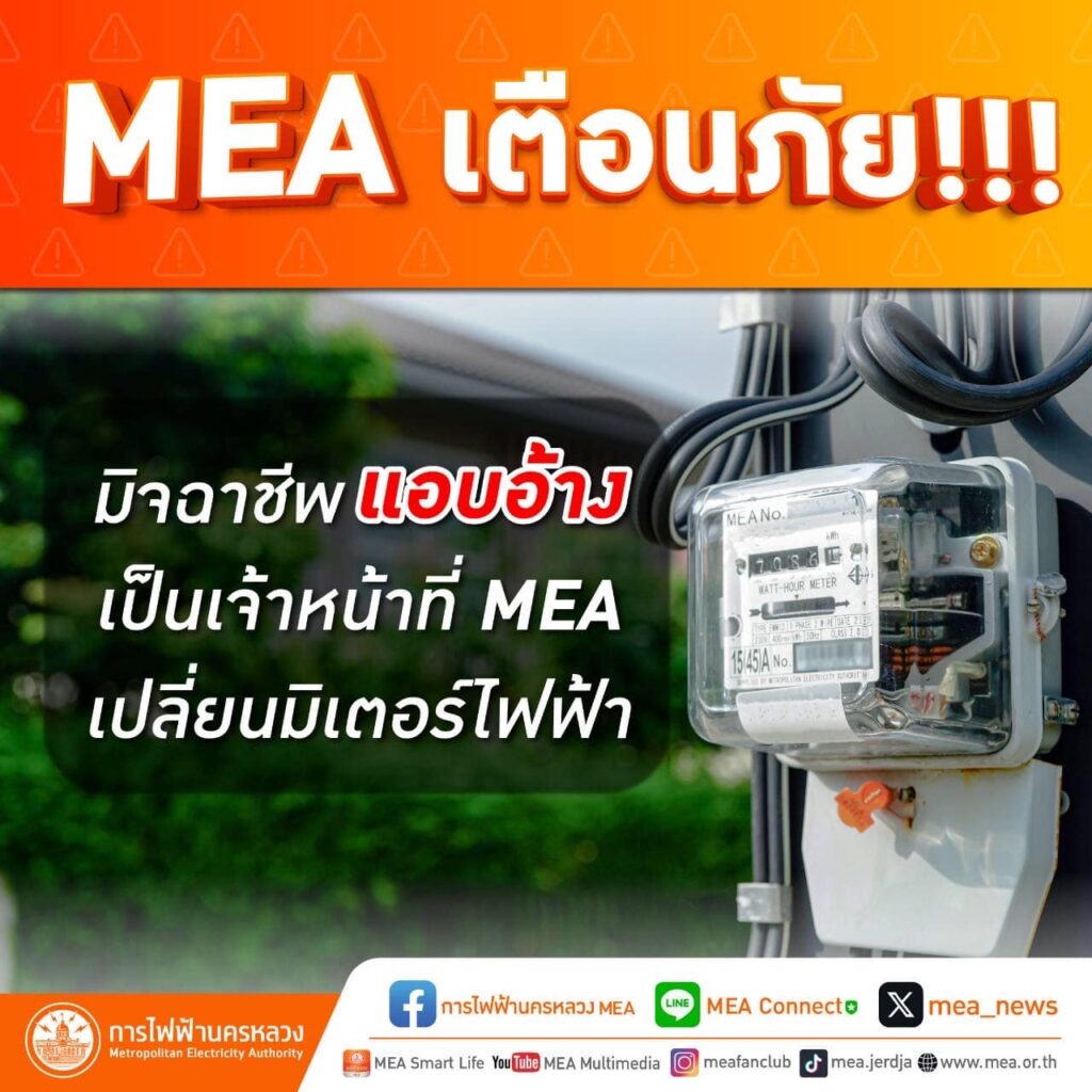 การไฟฟ้านครหลวง เตือนภัยมิจฉาชีพหลอกลวงเปลี่ยนมิเตอร์ไฟฟ้าฟรี