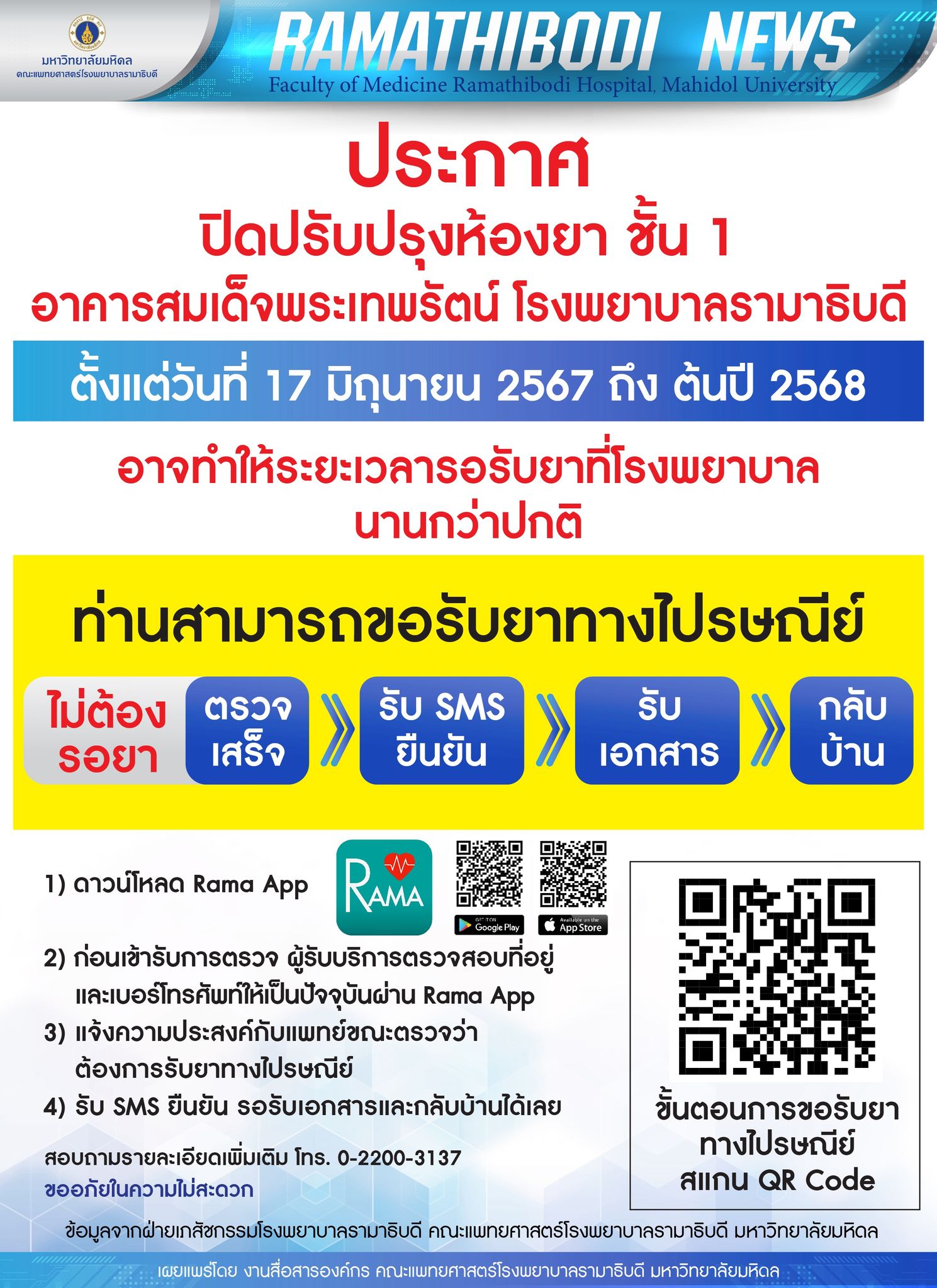 คณะแพทยศาสตร์โรงพยาบาลรามาธิบดี ประกาศปิดปรับปรุงห้องยา ชั้น 1 ข่าวสารกิจกรรม คณะแพทยศาสตร์โรงพยาบาลรามาธิบดี ประกาศปิดปรับปรุงห้องยา ชั้น 1 คณะแพทยศาสตร์โรงพยาบาลรามาธิบดี ประกาศปิดปรับปรุงห้องยา ชั้น 1 อาคารสมเด็จพระเทพรัตน์ โรงพยาบาลรามาธิบดี ตั้งแต่วันที่ 17 มิถุนายน 2567 ถึงต้นปี 2568 อาจทำให้ระยะเวลารอรับยาที่โรงพยาบาลนานกว่าปกติ ประกาศปิดปรับปรุงห้องยา ชั้น 1 อาคารสมเด็จพระเทพรัตน์ โรงพยาบาลรามาธิบดี ตั้งแต่วันที่ 17 มิถุนายน 2567 ถึง ต้นปี 2568 อาจทำให้ระยะเวลารอรับยาที่โรงพยาบาลนานกว่าปกติ ที่มา : https://shorturl.asia/2iWsU Post Views: 113 FacebookFacebookXTwitterLINELine
