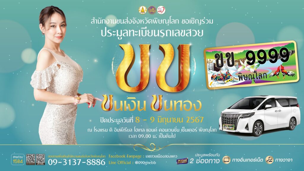• กองทุนเพื่อความปลอดภัยในการใช้รถใช้ถนน สำนักงานขนส่งจังหวัดพิษณุโลก จัดงานประมูลทะเบียนรถเลขสวย หมวดอักษร ขข