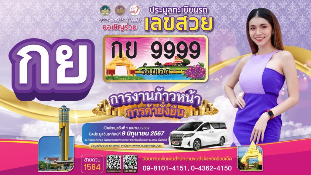 • กองทุนเพื่อความปลอดภัยในการใช้รถใช้ถนน สำนักงานขนส่งจังหวัดร้อยเอ็ด จัดงานประมูลทะเบียนรถเลขสวย หมวดอักษร กย