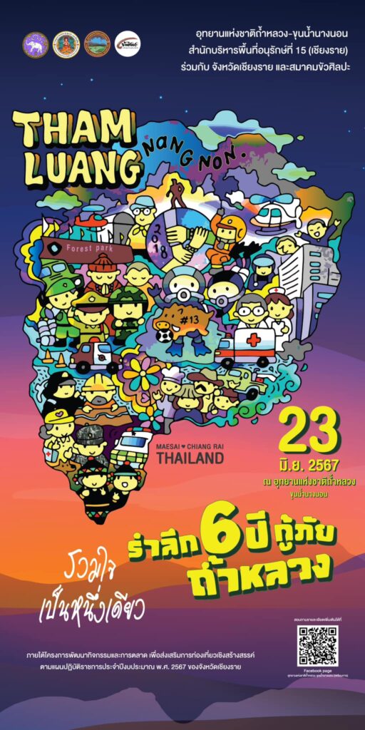 - การท่องเที่ยวแห่งประเทศไทย เชิญชวนร่วมกิจกรรมรำลึก 6 ปี กู้ภัยถ้ำหลวง รวมใจเป็นหนึ่งเดียว