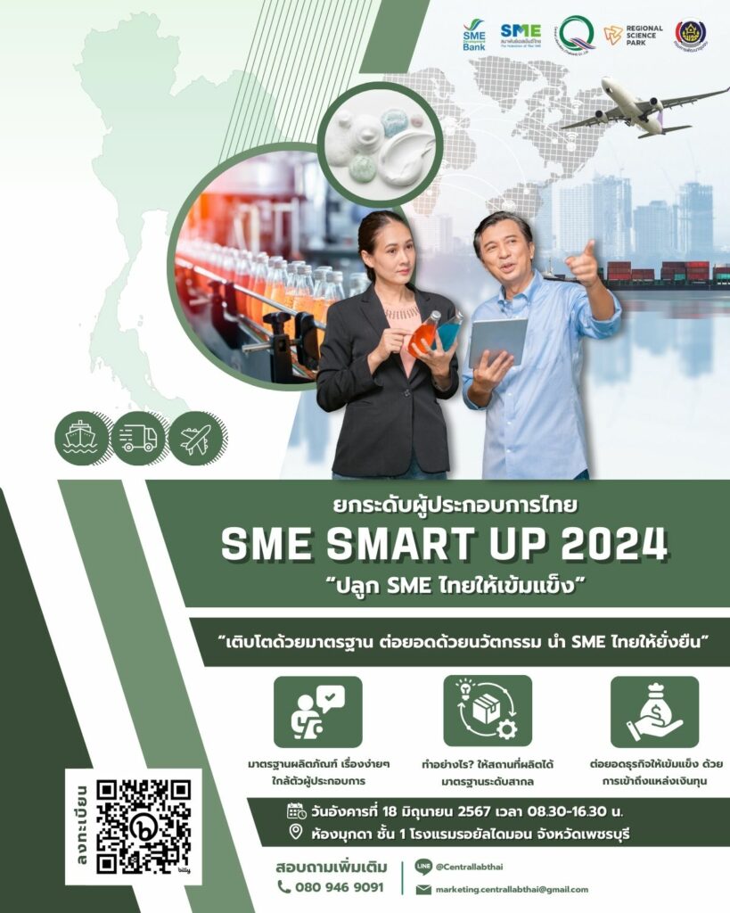 ธนาคารพัฒนาวิสาหกิจขนาดกลางและขนาดย่อมแห่งประเทศไทย เชิญร่วมสัมมนาพัฒนาทักษะ สำหรับผู้ประกอบการในพื้นที่ จังหวัดเพชรบุรี และใกล้เคียง ภายในธีม SME SMART UP 2024 ปลูก SME ไทยให้เข้มแข็ง โดยมีหัวข้อ “เติบโตด้วยมาตรฐาน ต่อยอดด้วยนวัตกรรม นำ SME ไทยให้ยั่งยืน” วันอังคารที่ 18 มิถุนายน 2567 ณ ห้องมุกดา ชั้น 1 โรงแรมรอยัลไดมอน จังหวัดเพชรบุรี
