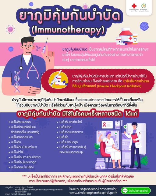 โรงพยาบาลจุฬาลงกรณ์ สภากาชาดไทย แนะนำเกี่ยวกับยาภูมิคุ้มกันบำบัด