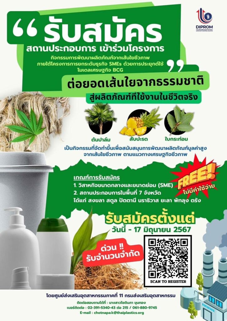 กรมส่งเสริมอุตสาหกรรม ขอเชิญร่วมกิจกรรมการพัฒนาผลิตภัณฑ์จากเส้นใยชีวภาพ สมัครได้ตั้งแต่บัดนี้ – 17 มิ.ย.67