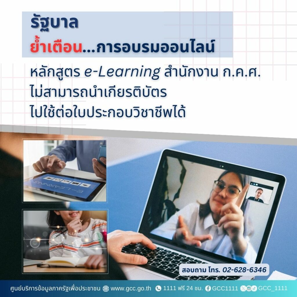 รัฐบาล ย้ำเตือนการอบรมออนไลน์หลักสูตร e-Learning ไม่สามารถนำเกียรติบัตรไปใช้ต่อใบประกอบวิชาชีพได้