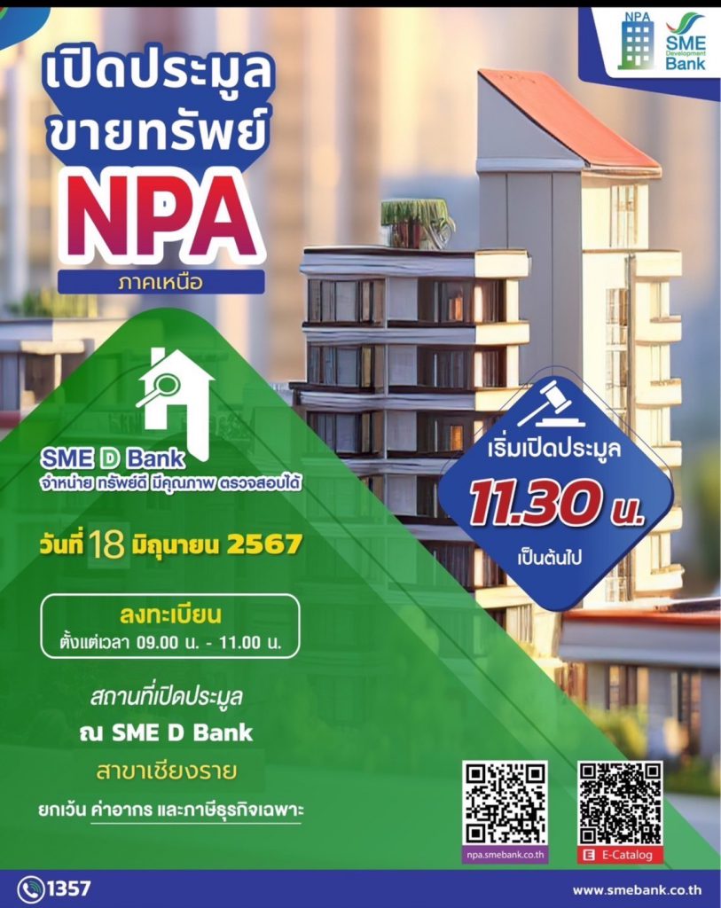 SME D Bank จัดงานประมูลขายทรัพย์ NPA สาขา เชียงราย วันที่ 18 มิถุนายน 2567