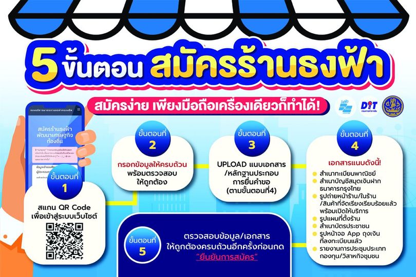 - กรมการค้าภายใน แนะนำ 5 ขั้นตอนสมัครร้านธงฟ้า
