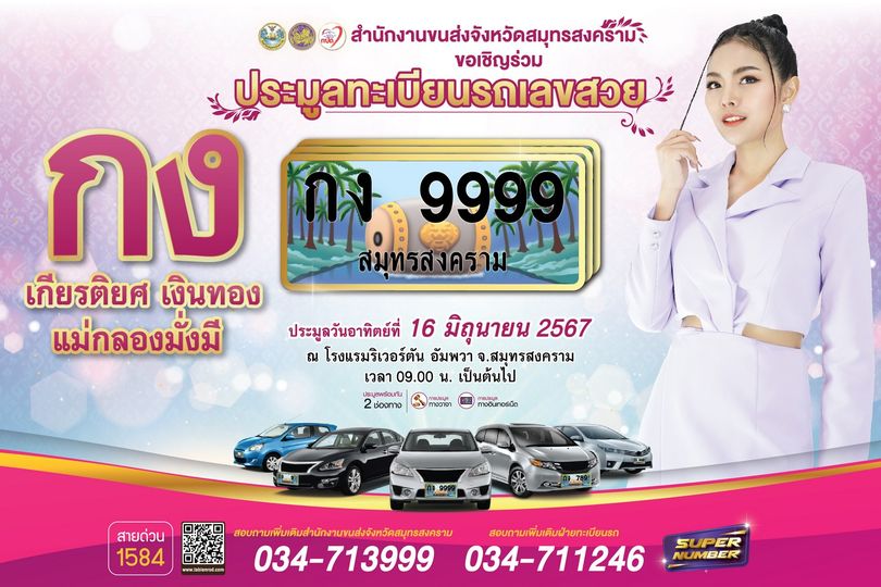 - กองทุนเพื่อความปลอดภัยในการใช้รถใช้ถนน สำนักงานขนส่งจังหวัดสมุทรสงคราม จัดงานประมูลทะเบียนรถเลขสวย