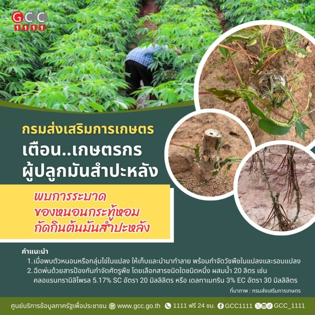 กรมส่งเสริมการเกษตร เตือนเกษตรกรผู้ปลูกมันสำปะหลัง