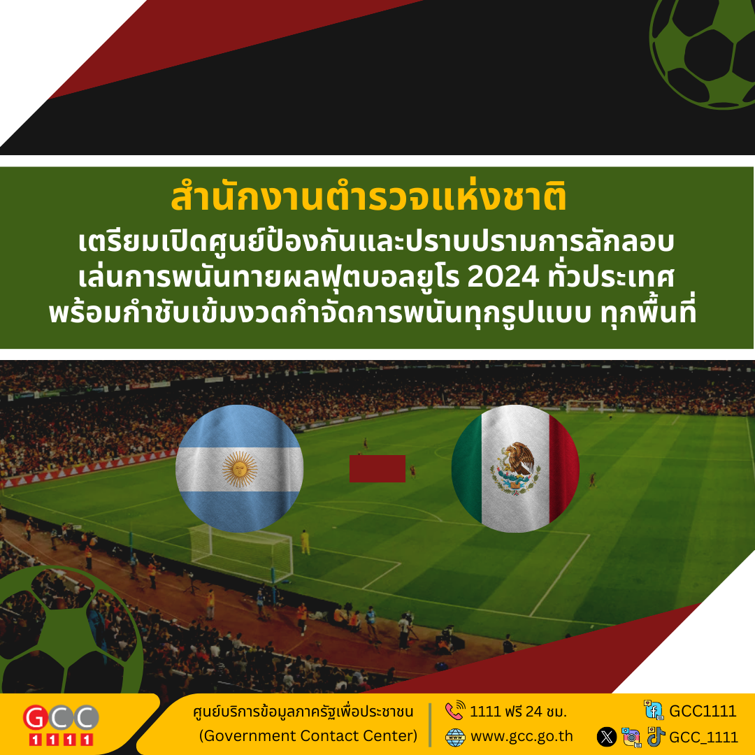 สำนักงานตำรวจแห่งชาติ เตรียมเปิดศูนย์ป้องกันและปราบปรามการลักลอบเล่นการพนันทายผลฟุตบอลยูโร 2024