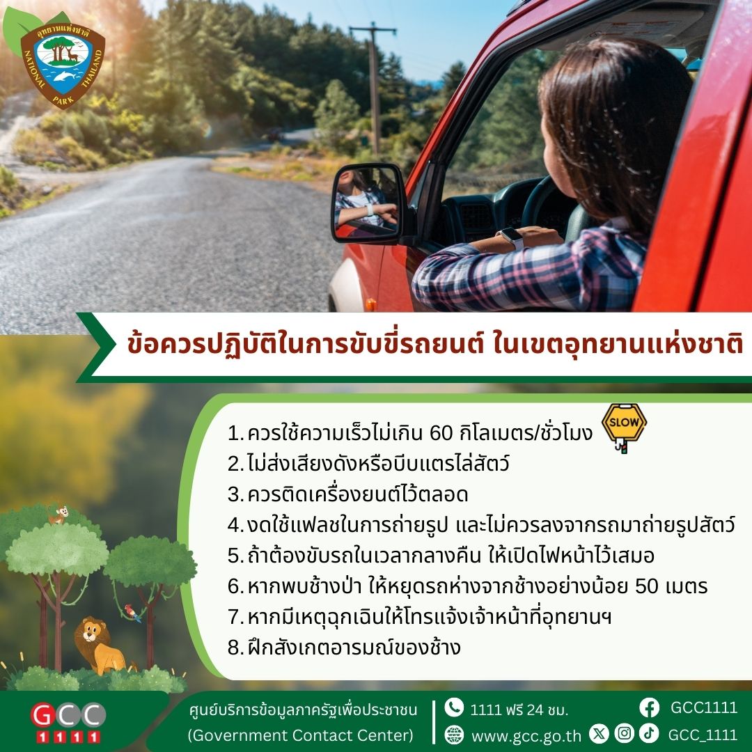 ข้อควรปฏิบัติในการขับขี่รถยนต์ ในเขตอุทยานแห่งชาติ ดังนี้