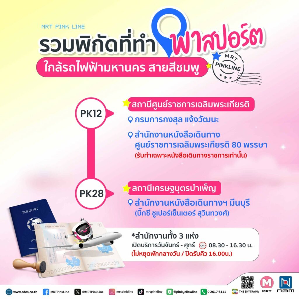 รถไฟฟ้ามหานคร สายสีชมพู รวมพิกัดทำพาสปอร์ต ใกล้รถไฟฟ้ามหานคร สายสีชมพู