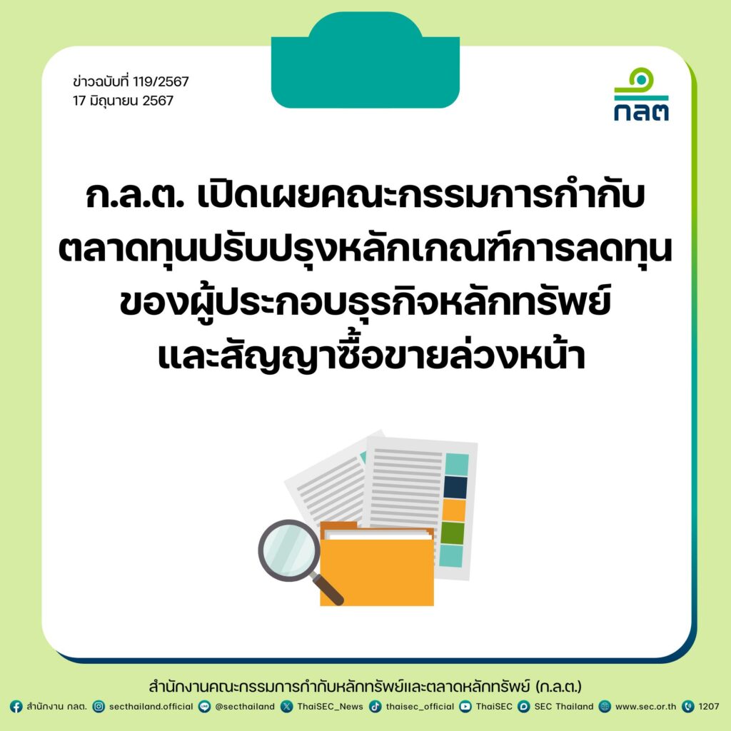 ก.ล.ต. เปิดเผยคณะกรรมการกำกับตลาดทุนปรับปรุงหลักเกณฑ์การลดทุนของผู้ประกอบธุรกิจหลักทรัพย์ และสัญญาซื้อขายล่วงหน้า