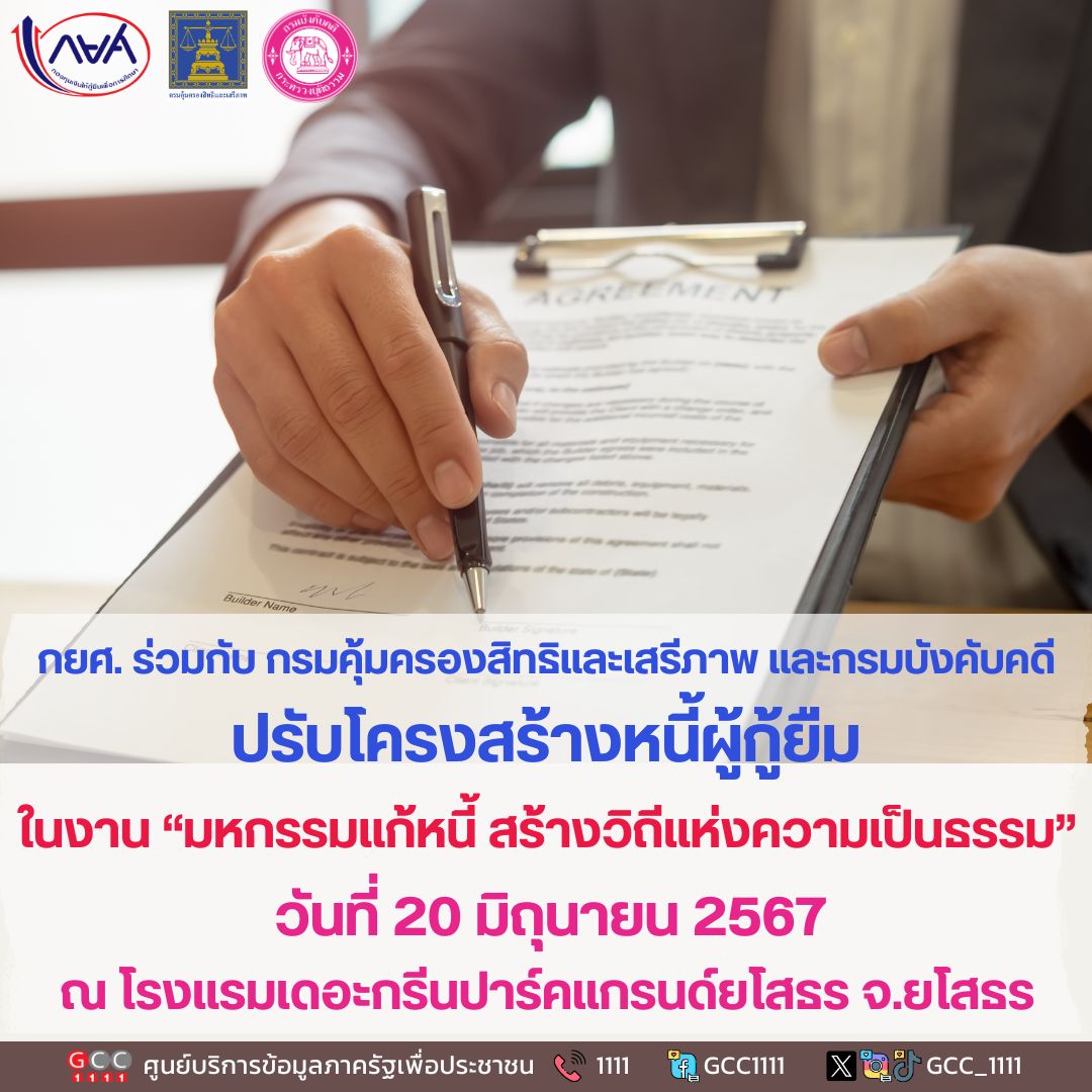 กองทุนเงินให้กู้ยืมเพื่อการศึกษา ร่วมกับกรมคุ้มครองสิทธิและเสรีภาพ และกรมบังคับคดี ปรับโครงสร้างหนี้ผู้กู้ยืม ในงาน “มหกรรมแก้หนี้ สร้างวิถีแห่งความเป็นธรรม” วันที่ 20 มิถุนายน 2567 ณ โรงแรมเดอะกรีนปาร์คแกรนด์ยโสธร จังหวัดยโสธร