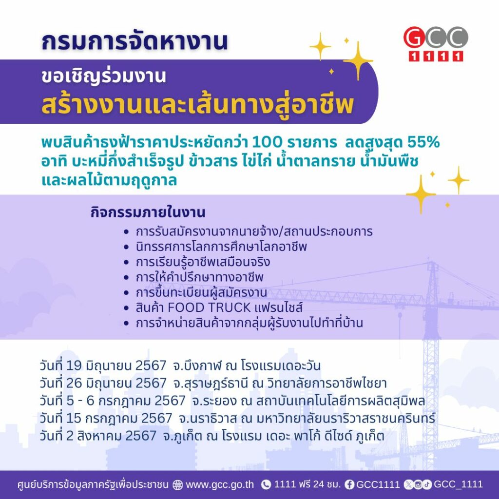 กรมการจัดหางาน ขอเชิญร่วมงาน”สร้างงานและเส้นทางสู่อาชีพ” วันที่ 19 มิ.ย. – 2 ส.ค. 67