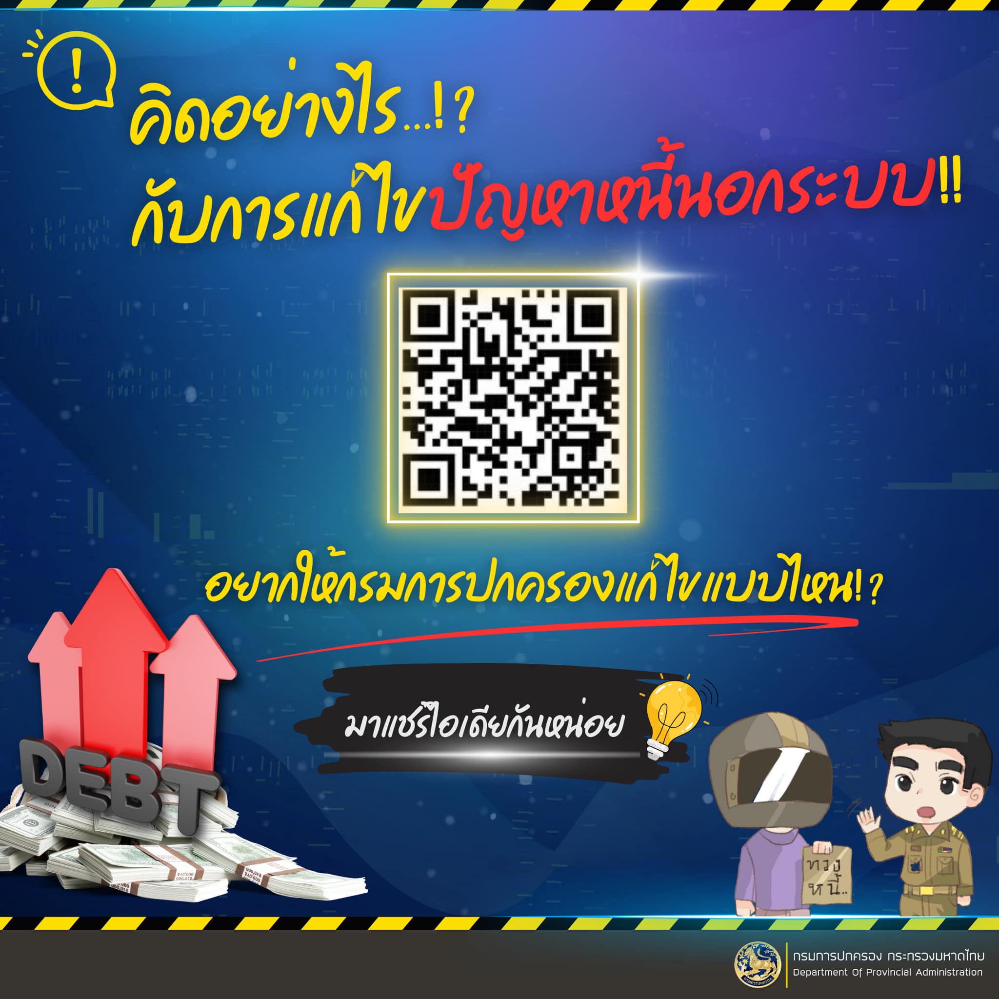 กรมการปกครอง เปิดรับฟังความคิดเห็นและข้อเสนอแนะเกี่ยวกับการดำเนินการตามนโยบายการแก้ไขปัญหาหนี้นอกระบบในห้วงเวลาที่ผ่านมา และเปิดให้เสนอแนวทางการแก้ไขปัญหาหนี้นอกระบบในระยะถัดไปจากผู้ปฏิบัติงานทั่วประเทศและประชาชนทั่วไป