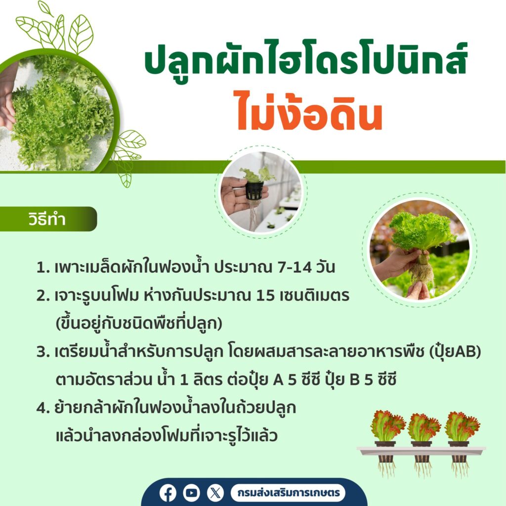 กรมส่งเสริมการเกษตร แนะนำ เคล็ดไม่ลับ “ปลูกผักฉบับมือใหม่ ปลูกง่าย ใช้พื้นที่น้อย” ข่าวสารกิจกรรม กรมส่งเสริมการเกษตร แนะนำ เคล็ดไม่ลับ “ปลูกผักฉบับมือใหม่ ปลูกง่าย ใช้พื้นที่น้อย” กรมส่งเสริมการเกษตร แนะนำ เคล็ดไม่ลับ “ปลูกผักฉบับมือใหม่ ปลูกง่าย ใช้พื้นที่น้อย” ได้แก่ การเพาะผักงอกอย่างง่าย 7 วันกินได้ การปลูกผักไฮโดรโปนิกส์แบบน้ำนิ่ง ในพื้นที่น้อย ที่มา : https://citly.me/QRU1S Post Views: 13 FacebookFacebookXTwitterLINELine