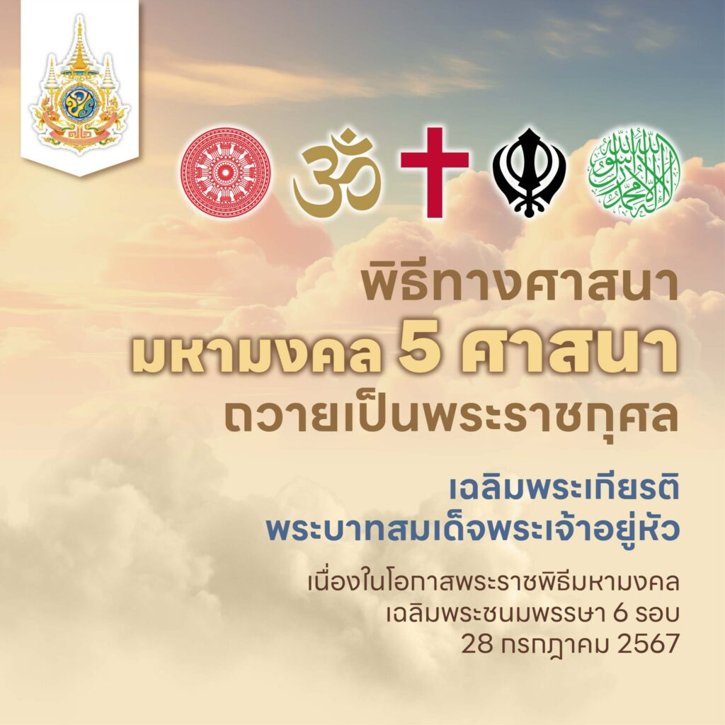 กระทรวงวัฒนธรรม จัดพิธีทางศาสนามหามงคล 5 ศาสนา เฉลิมพระเกียรติฯ วันที่ 25 กรกฎาคม 2567